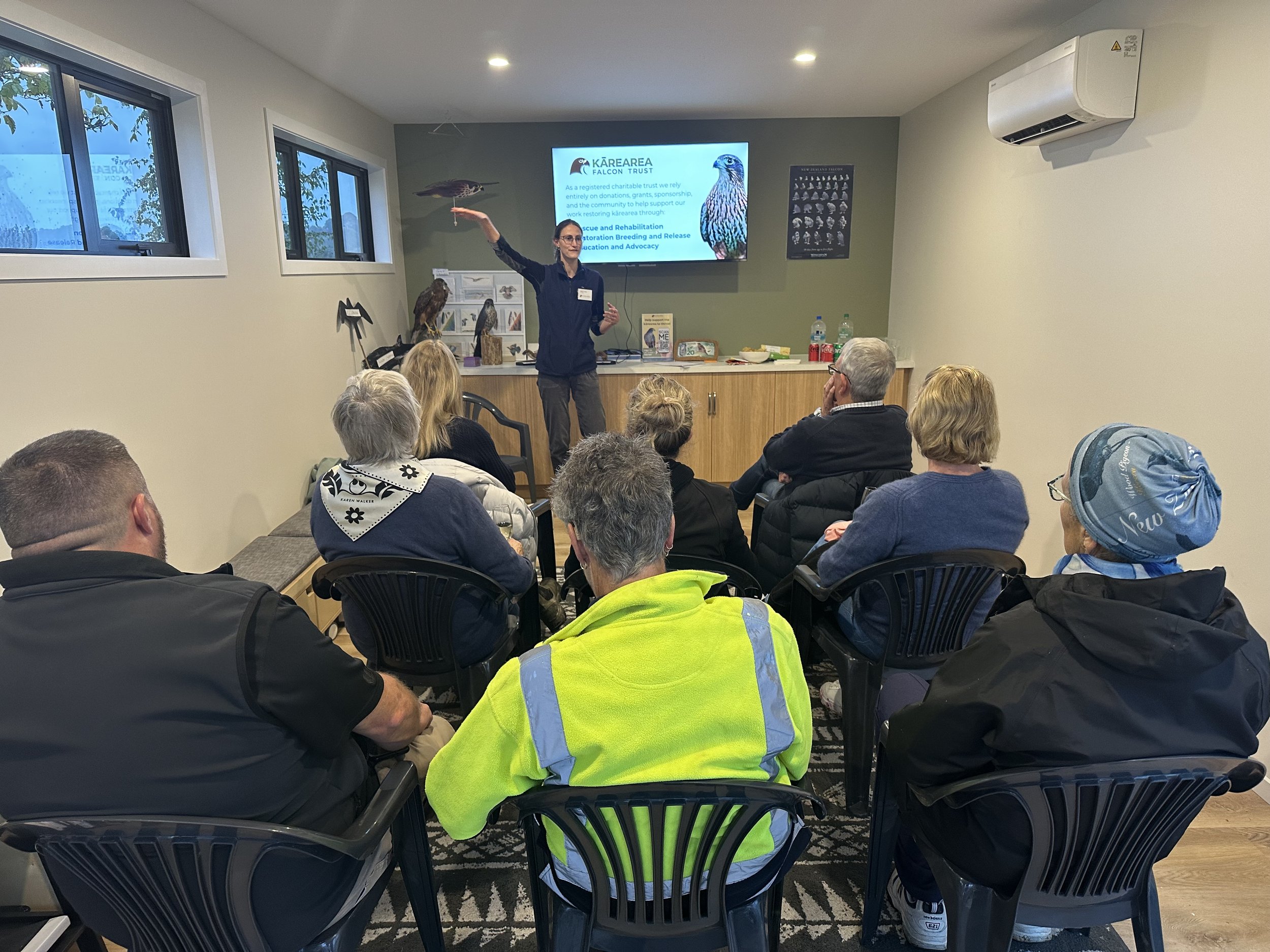The tour includes an educational talk about both the falcons and the work we carry out here at the Kārearea Falcon Trust, followed by a walk-through of our aviary. It provides you with a chance to learn about and view some of the resident falcons in our care.
